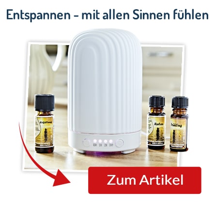 Entspannung ist eine wichtige Ruhepause im Alltag, eine Zeit, die nichts anderem gewidmet ist, in der wir ganz zu uns und dem Moment finden können. Zur Entspannung kann ein Moment der Achtsamkeit dienen, in dem wir die Augen schließen und uns ganz der Stille hingeben. Aroma-Diffuser, in denen verschiedene Duftöle eingesetzt werden können, helfen dabei, sich mit allen Sinnen auf die Gegenwart zu konzentrieren.